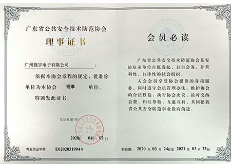安全技术防范系统协会理事单位证书