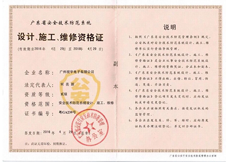 安防技术防范系统设计、施工、维修资格证书
